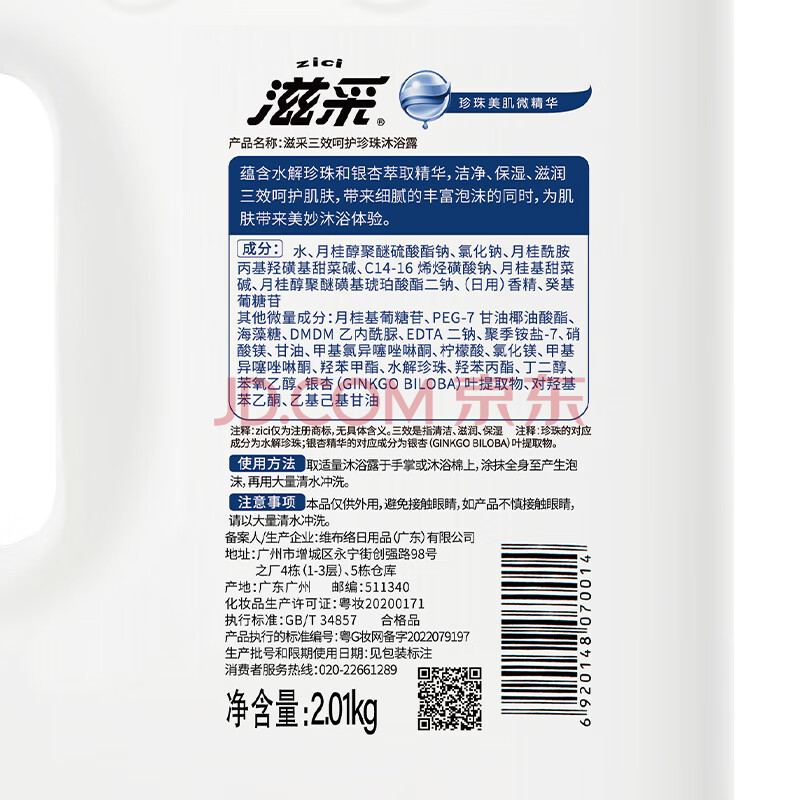 商品相册:滋采沐浴露 三效呵护珍珠沐浴宝2.01kg家庭装通用滋润保湿持久留香第