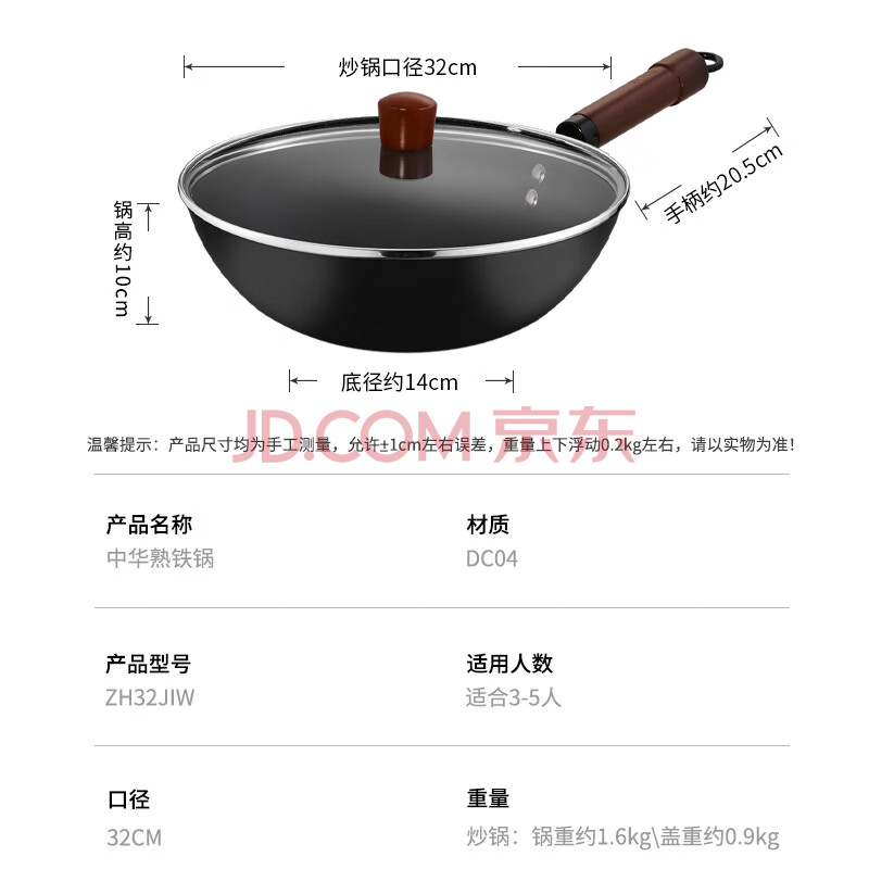 商品相册:炊大皇炒锅铁锅健康0无涂层煎炒平底炒菜锅32cm电磁炉通用ZH32JIW第