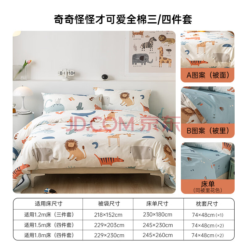 商品相册:多喜爱家纺全棉床上用品四件套 双人纯棉被套床单床品套件1.5米床203*229cm第