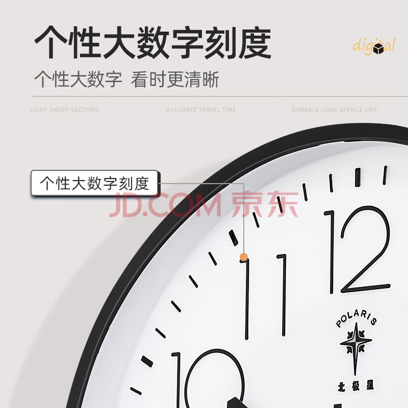 商品相册:北极星(POLARIS)挂钟客厅钟表挂墙家用时钟现代简约大气挂表时尚14英寸石英钟蓝色第