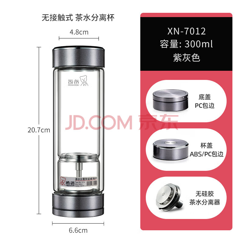 商品相册:希诺双层玻璃杯磁吸式茶水分离杯子男高档茶杯水杯XN-7012紫灰色300mL第