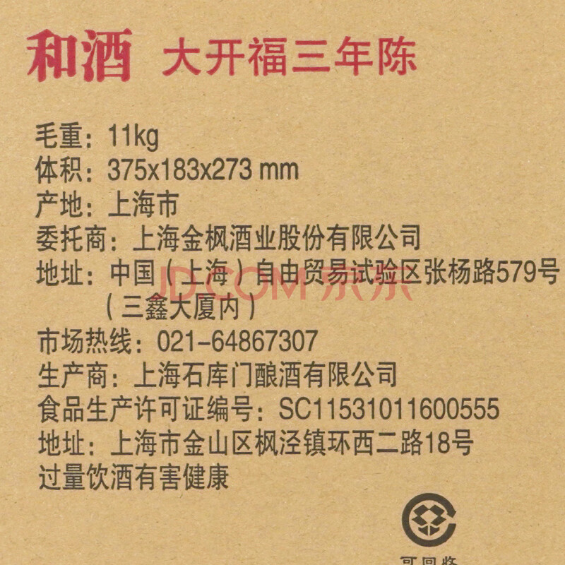 商品相册:和酒 大开福三年 半干型 海派黄酒 1L*6瓶 整箱装 上海老酒送礼礼盒第