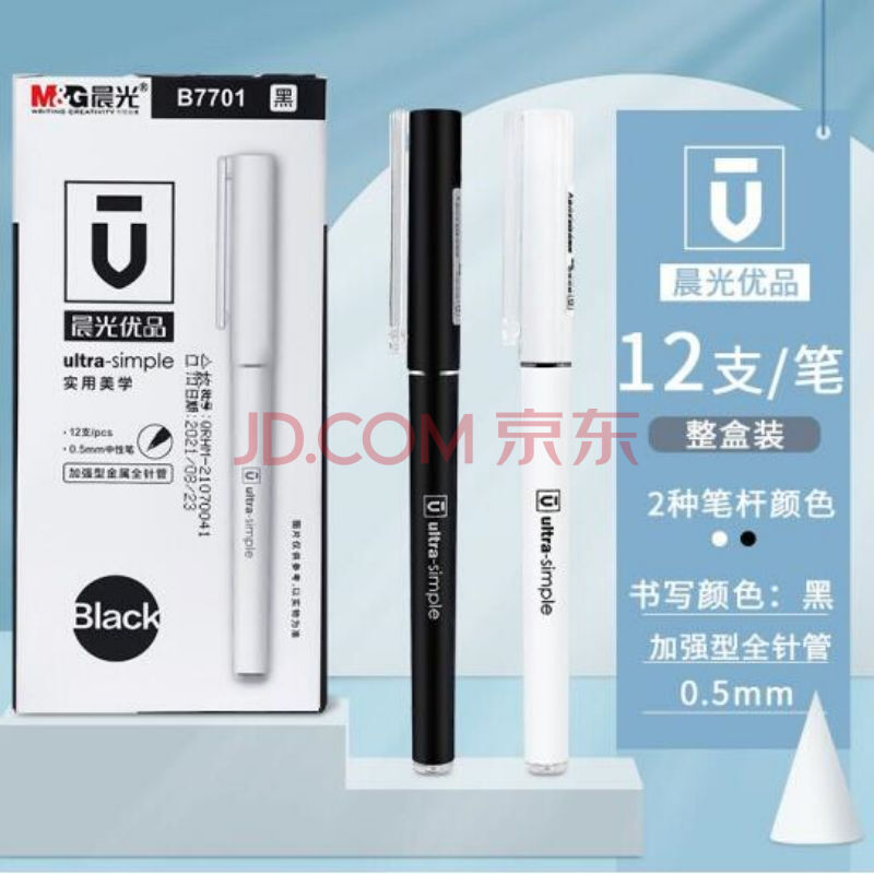 商品相册:晨光0.5mmAGPB7701优品中性笔加强型全针管签字笔水笔针头学生考试专用黑色 12支/盒 1盒装第