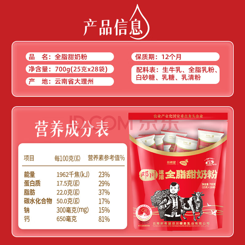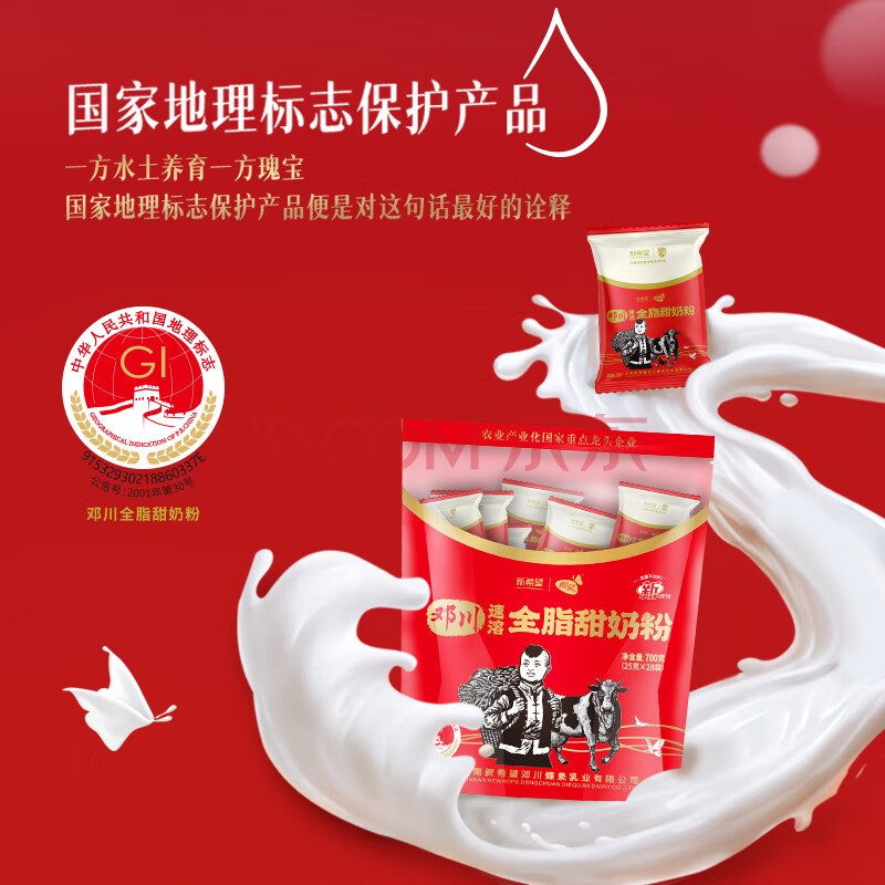 商品相册:蝶泉新希望邓川全脂甜奶粉700克成人奶粉袋装高钙高蛋白全家营养奶粉第