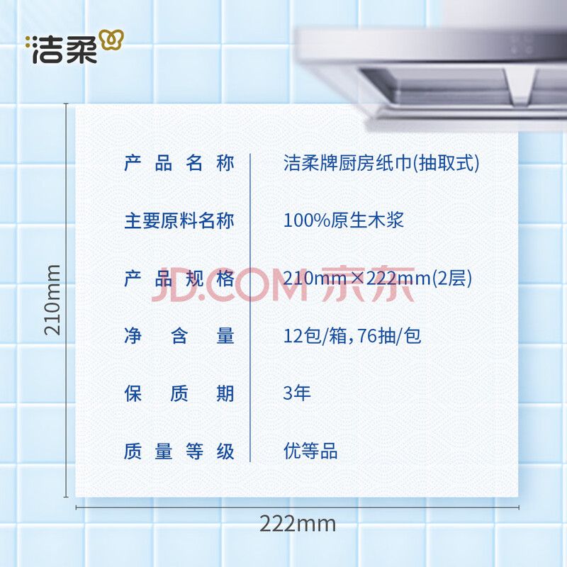 商品相册:洁柔厨房抽纸75抽*12包开学清洁加厚吸水吸油去油污一次性懒人抹布第