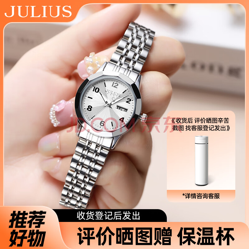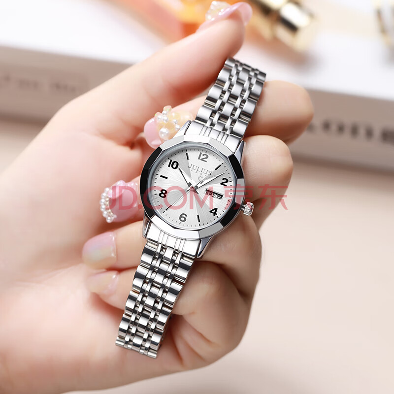 商品相册:聚利时(Julius)手表女情人节礼物送妈妈送老婆女士石英考试日历手表银色JA-1471A第