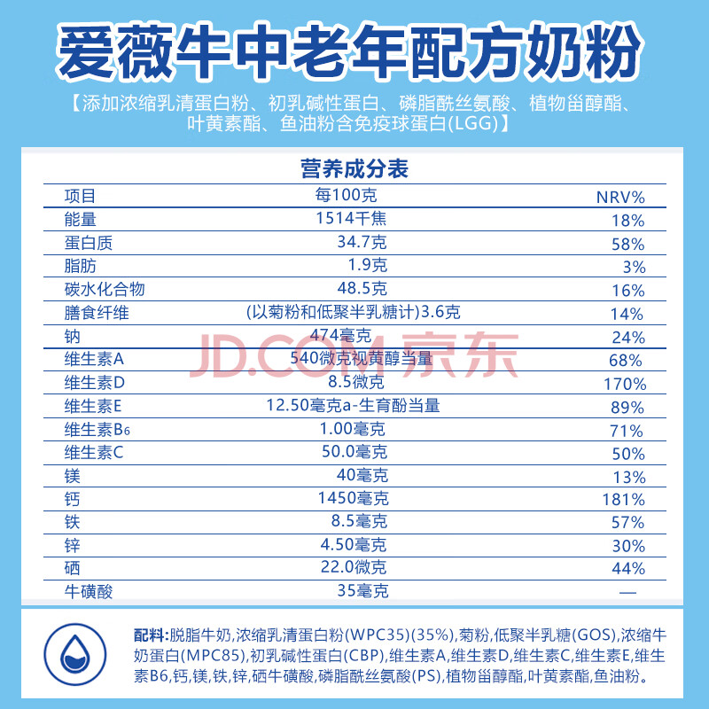 商品相册:爱薇牛中老年A2β免疫球蛋白低GI高钙脱脂奶粉800g*2礼盒送父母澳洲进口第