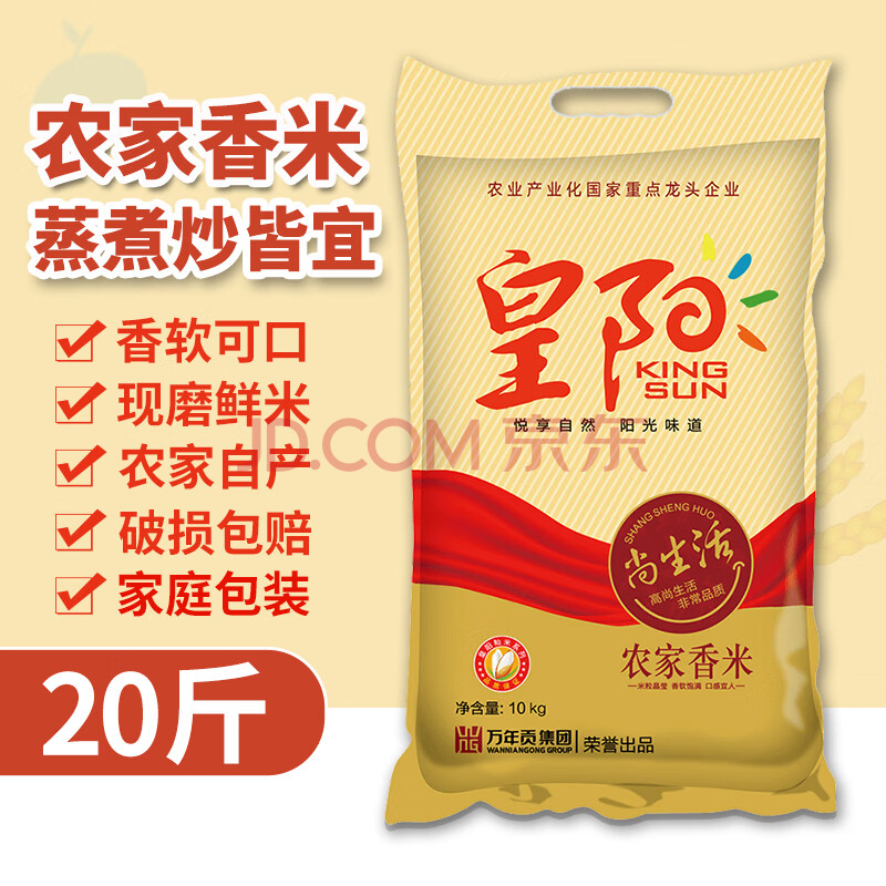 商品相册:万年贡 皇阳农家香米 20斤 油粘米 籼米 大包装 当季新米 家庭装大米第