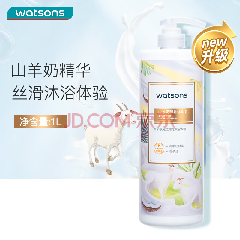 商品相册:屈臣氏 山羊奶柔润沐浴乳1L(山羊奶精华 椰子油 温和洁净)第