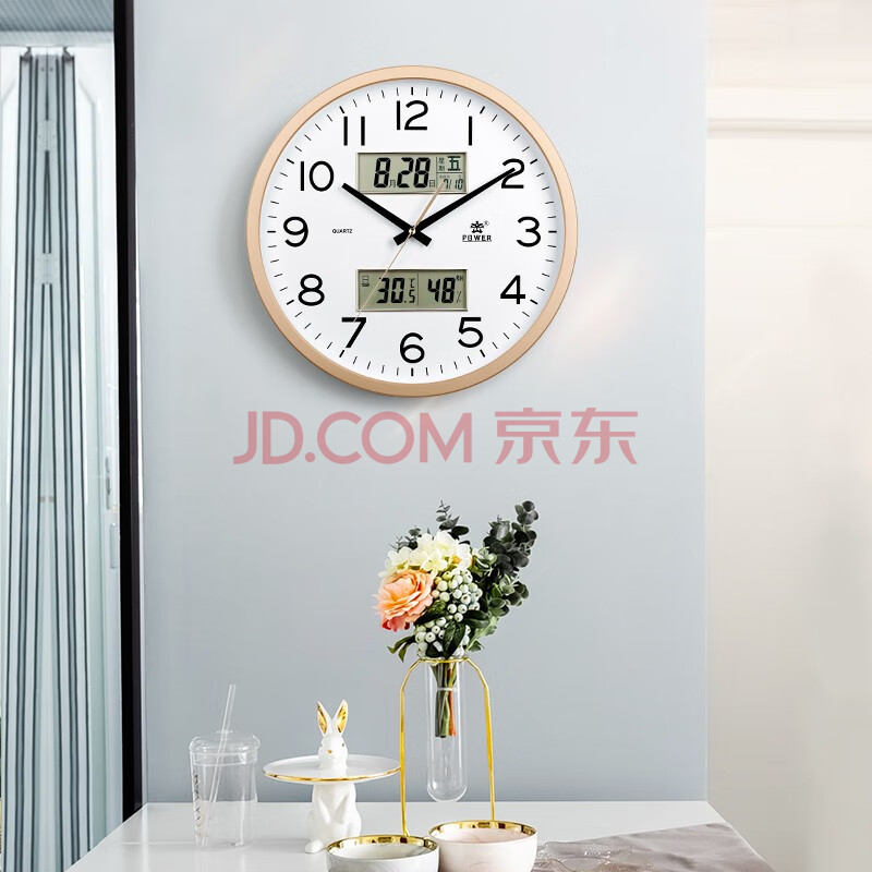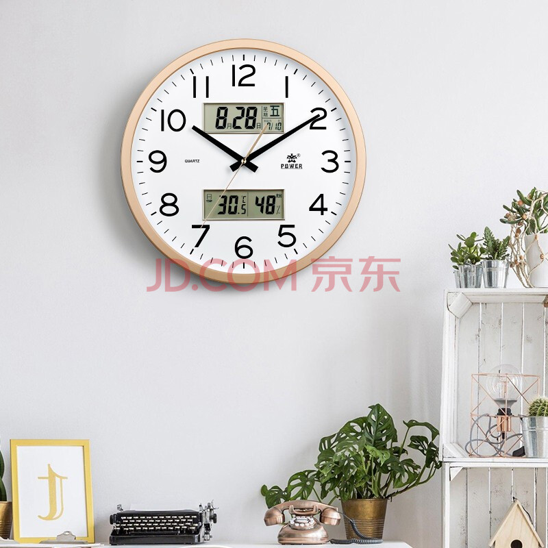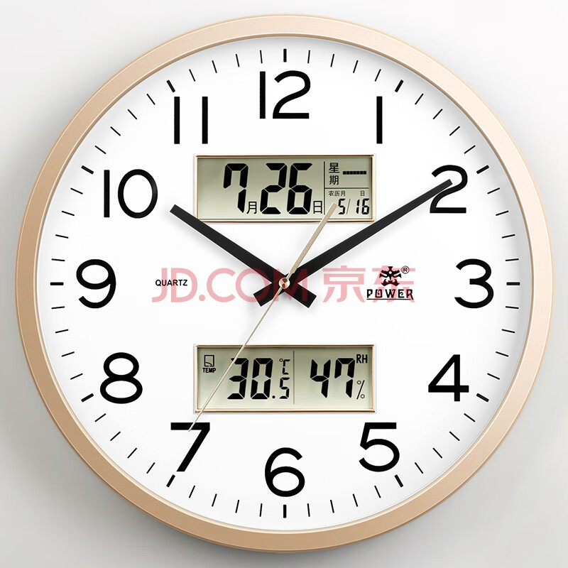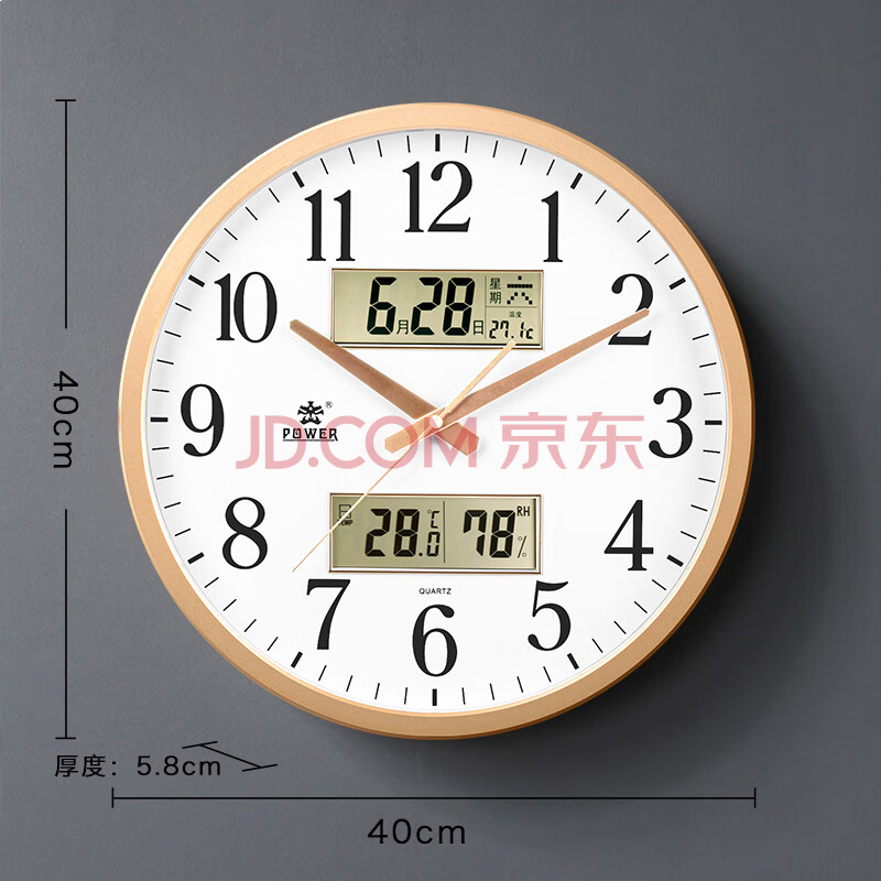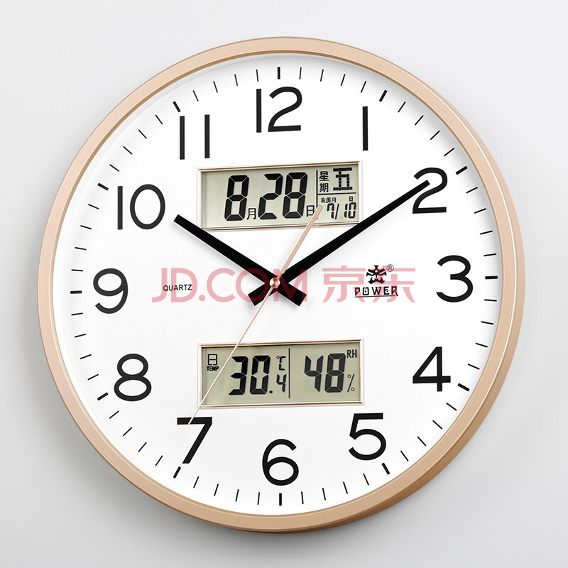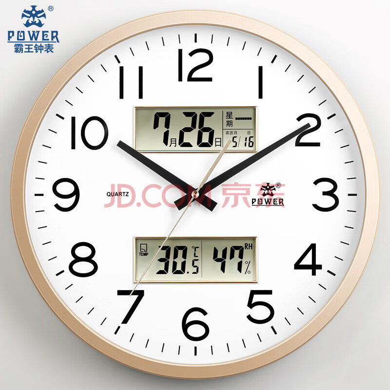 商品相册:POWER霸王挂墙挂钟客厅大号40cm日历温湿度时钟万年历石英钟BW24023A2第