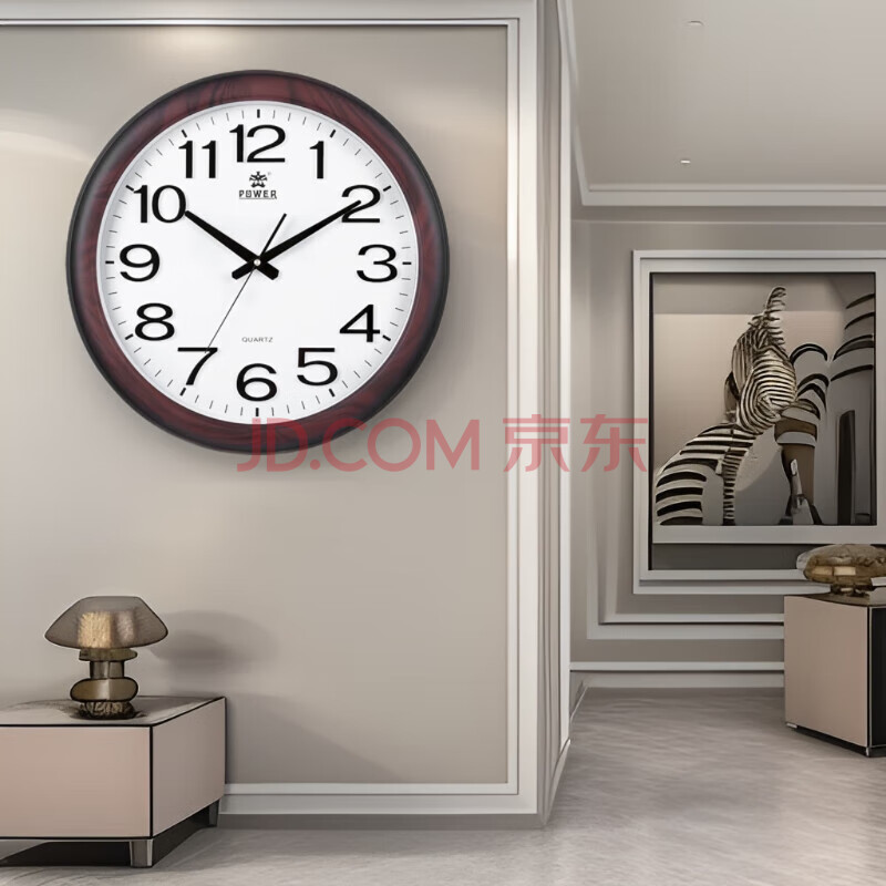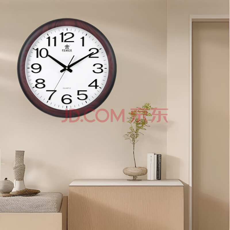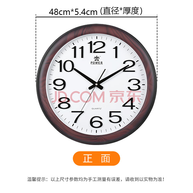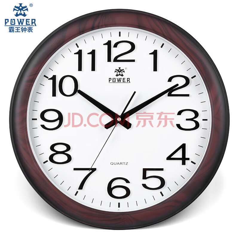 商品相册:POWER霸王挂钟表 大号中式客厅圆形石英钟挂墙免打孔直径48cm8922第