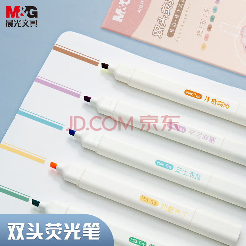 商品相册:晨光(M&G)文具6色双头荧光笔 醒目重点标记笔 奶茶系列水性手绘手账笔 6支/盒 AHMT7304考试必备第