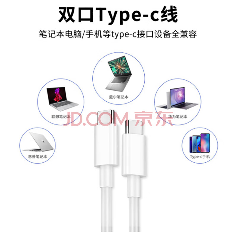 商品相册:trendsetter双头type-c充电线65W快充2米加长适用联想惠普戴尔小米华为苹果电脑充电器线PD电源线第