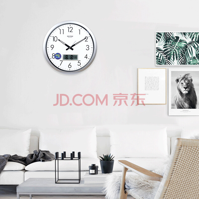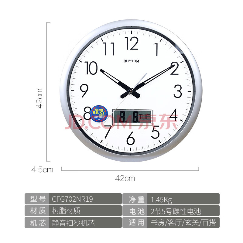 商品相册:丽声(RHYTHM)挂钟现代简约静音液晶钟创意挂表客厅卧室表挂墙42cm cfg702nr19第