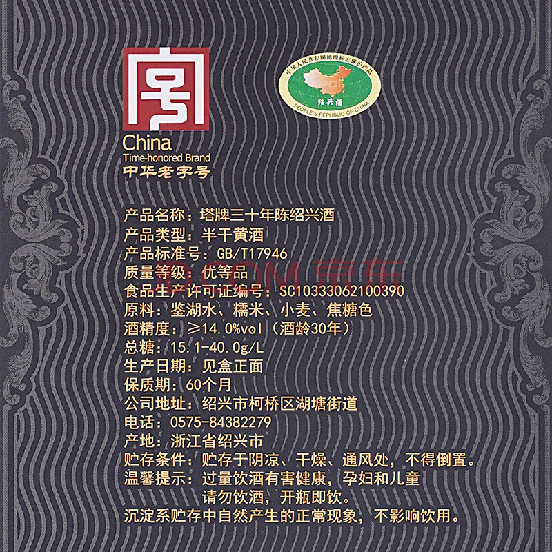 商品相册:塔牌 花雕酒三十年 半干型 绍兴黄酒 600ml 单瓶装 花雕第