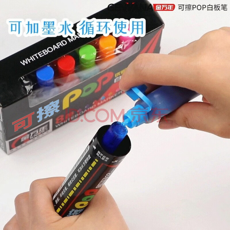 商品相册:金万年【8色POP】易擦可擦斜平头5mm可加墨彩色白板笔会议笔 培训笔教学笔 涂鸦笔G-0622-019第