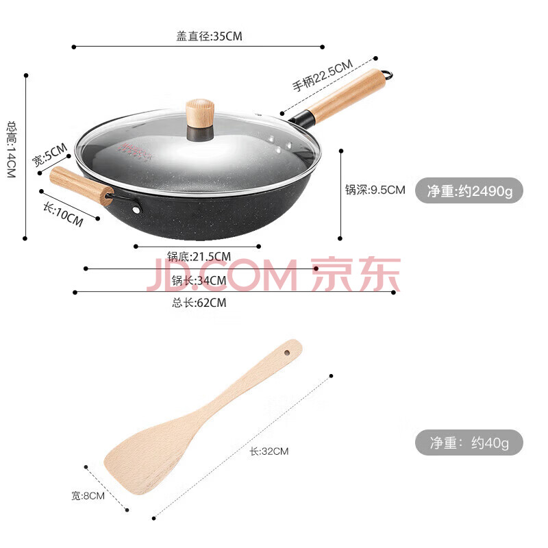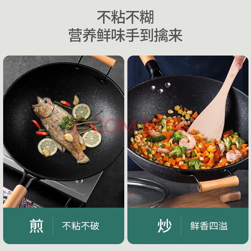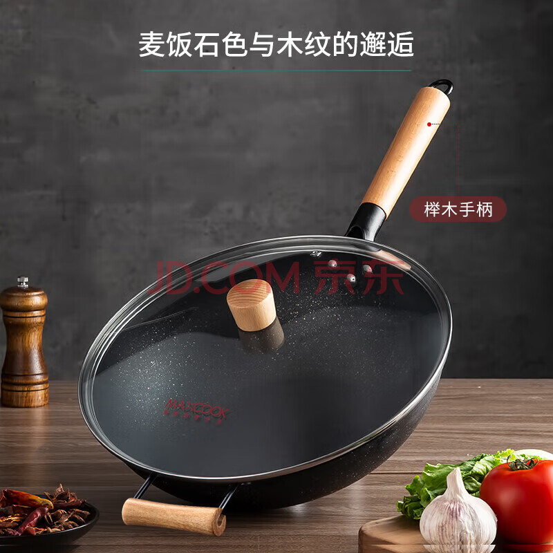 商品相册:美厨(maxcook)不粘炒锅 精铁带盖带木铲34cm电磁炉 明火通用不粘涂层MCC9335第