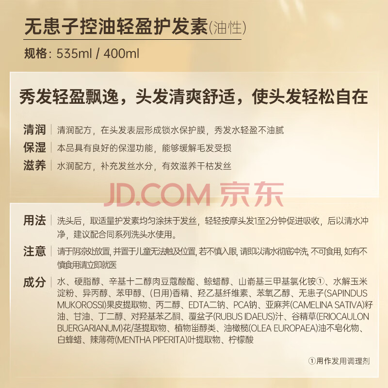 商品相册:滋源护发素无患子控油柔顺发膜无硅油清爽蓬松顺滑男女士润发乳400ml第