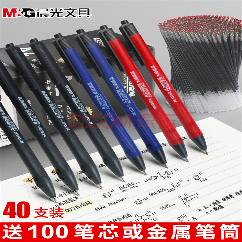 商品相册:晨光圆珠笔按压式A2中油笔 笔芯水感顺滑ABPW3002黑0.70.7mm 40支/盒 1盒第