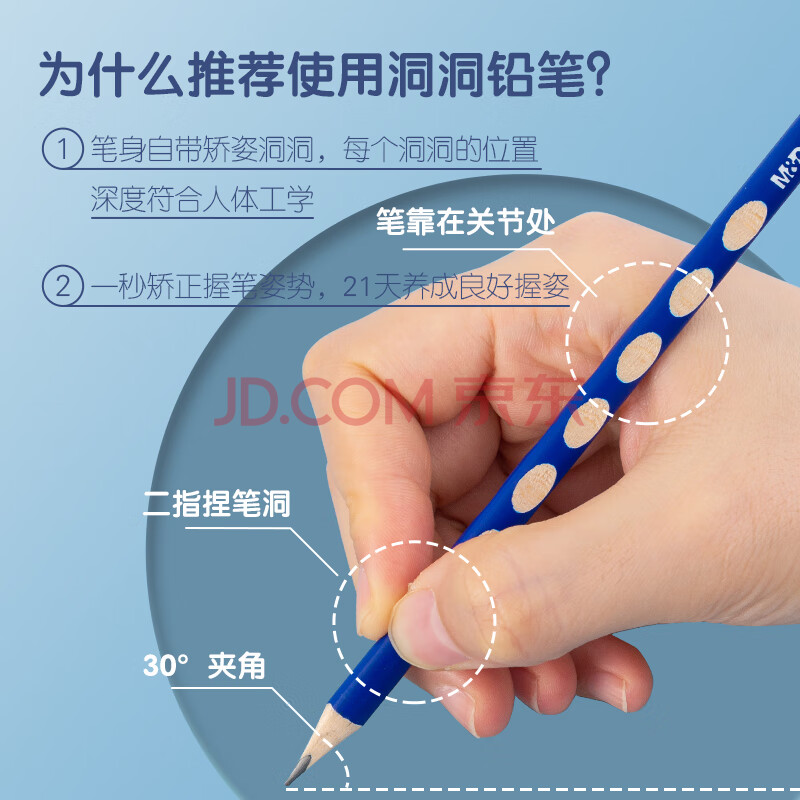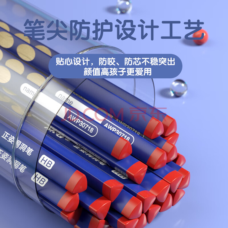 商品相册:晨光(M&G)文具铅笔HB洞洞铅笔50支 小学生开学练字铅笔 儿童正姿矫姿 三角木杆沾顶易抓握 AWP30744第