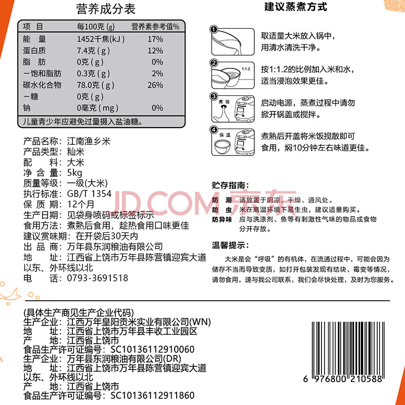 商品相册:万年贡 江南渔乡米 江西大米 丝苗米10斤 当季新米 大米丝苗米 新米第1张/共8