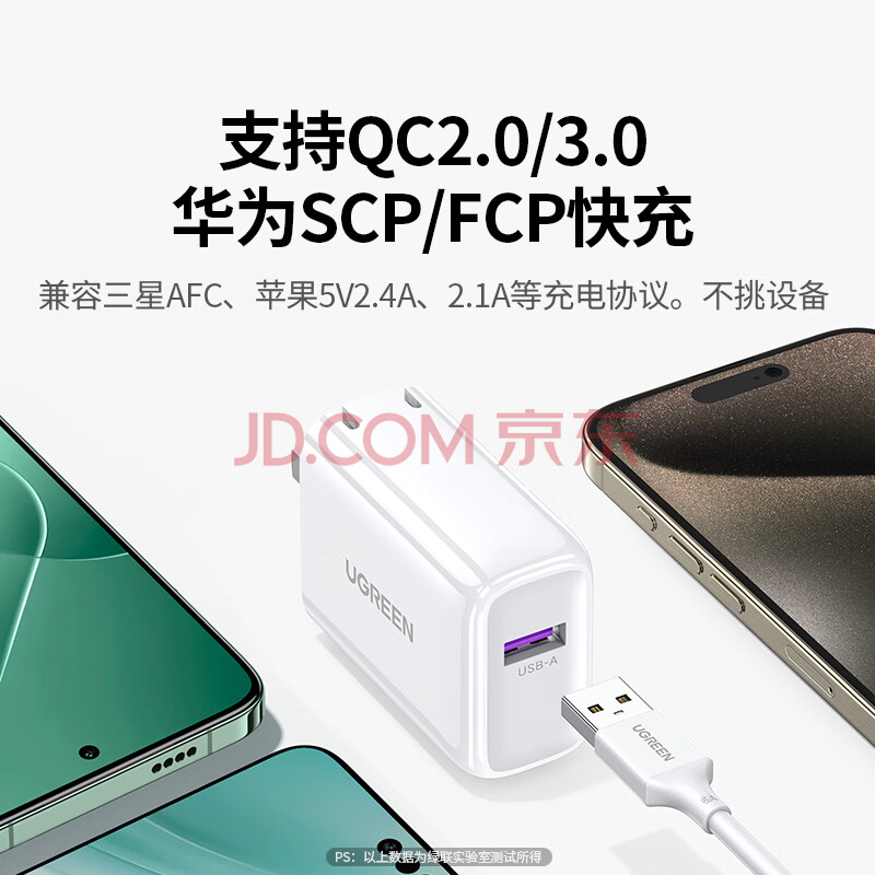 商品相册:绿联22.5W充电器usb超级快充头适用华为mate70/60pro/pura70/p50/40荣耀小米oppo/vivo安卓手机插头第