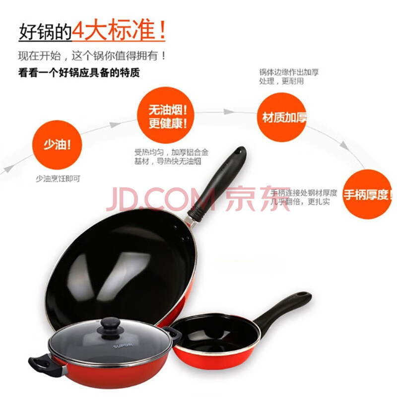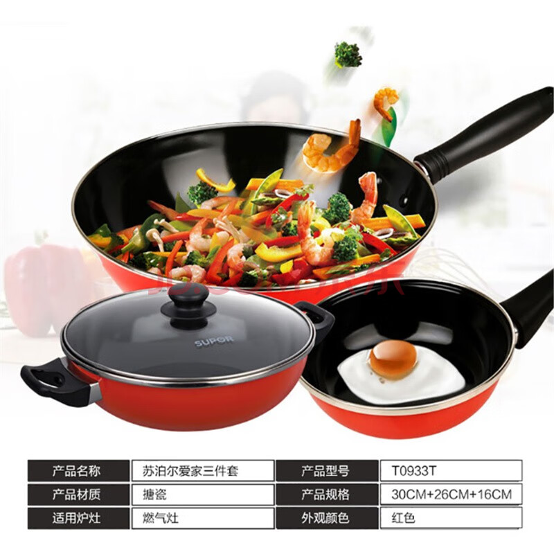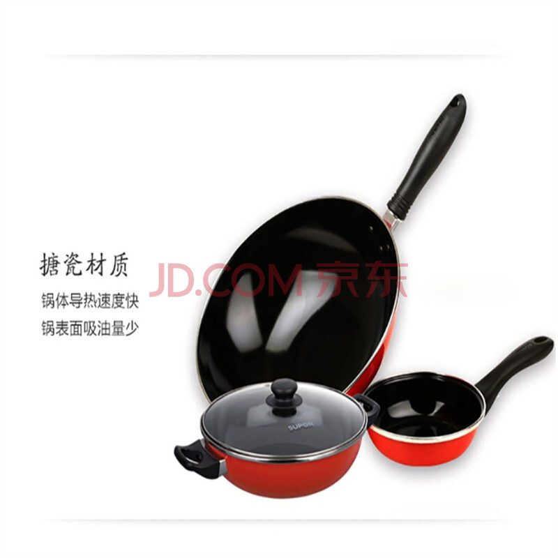商品相册:苏泊尔 不粘锅三件套爱家三件套 搪瓷炒锅 不粘锅明火 T0933T三件套第