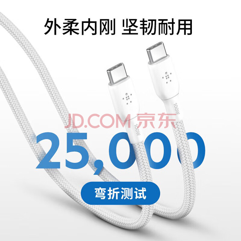商品相册:贝尔金(BELKIN)数据线 100W快充 Type-C充电线 PD快充 苹果笔记本电脑充电 ipad充电 2米编织线黑色 CAB014第