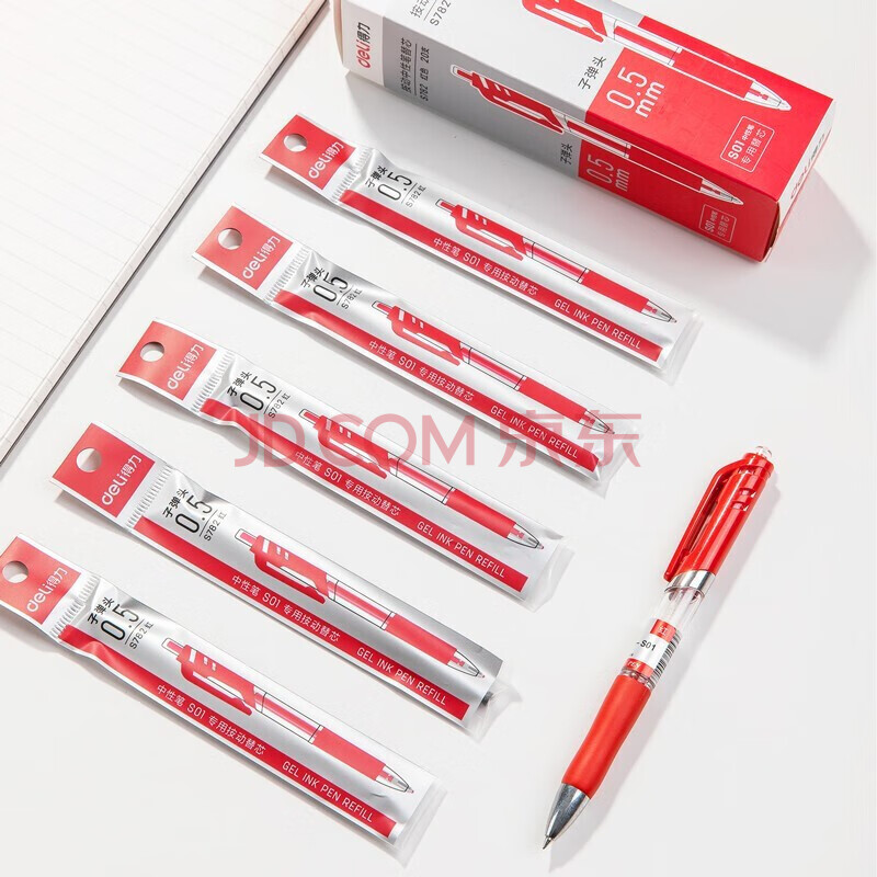 商品相册:【开学必备】得力S782按动中性笔替芯0.5mm子弹头(红) 20支/盒 邮储专享第