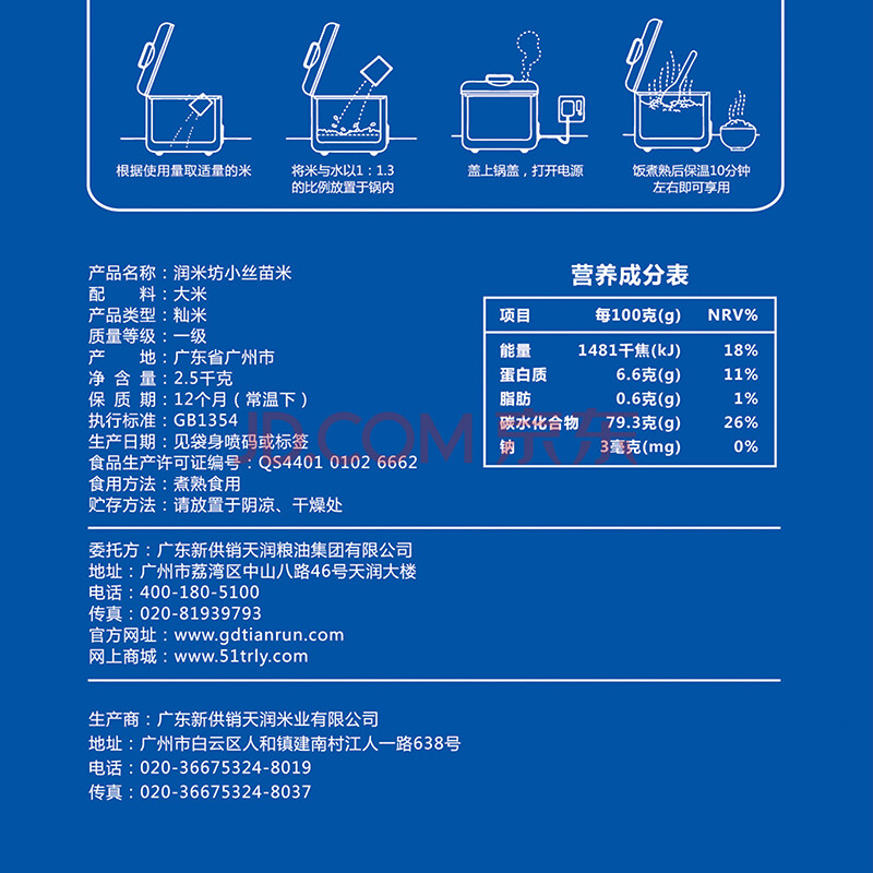 商品相册:新供销天润 润米坊 台山小丝苗米 广东当季新米 猫牙米 南方籼米 30斤家庭装第1张/共8