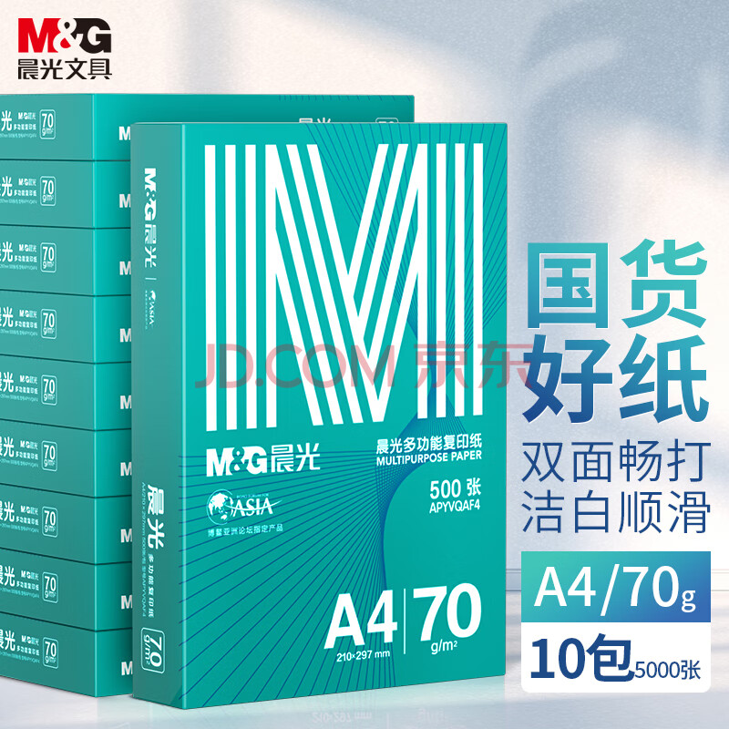 商品相册:晨光(M&G)绿晨光 A4 70g多功能双面打印纸A4 复印纸 500张/包 10包/箱 整箱5000张 APYVQAF6第
