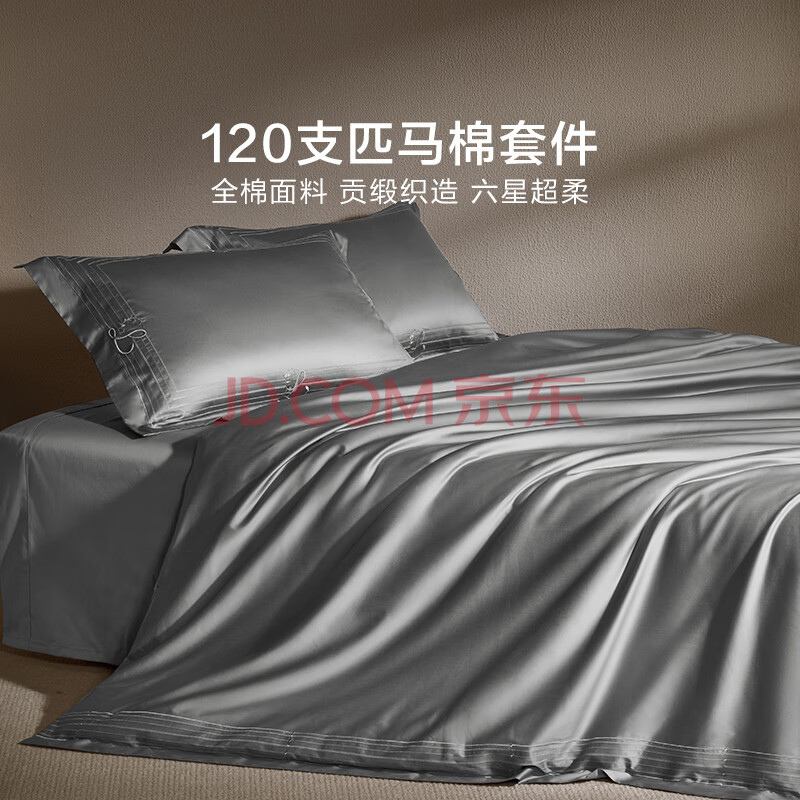 商品相册:罗莱家纺纯棉床上四件套120支匹马棉 轻奢床单被套双人套件 200*230第