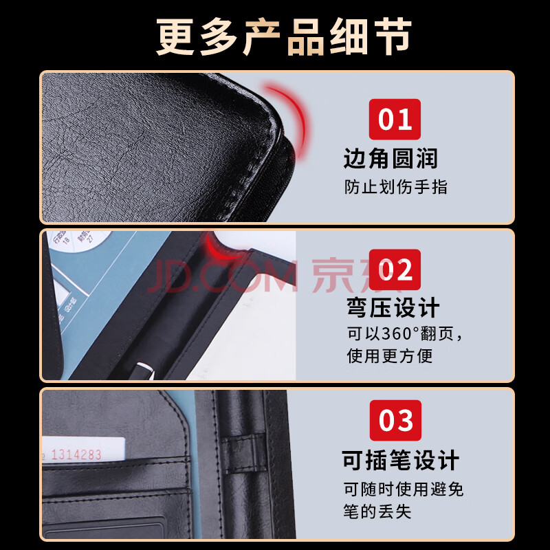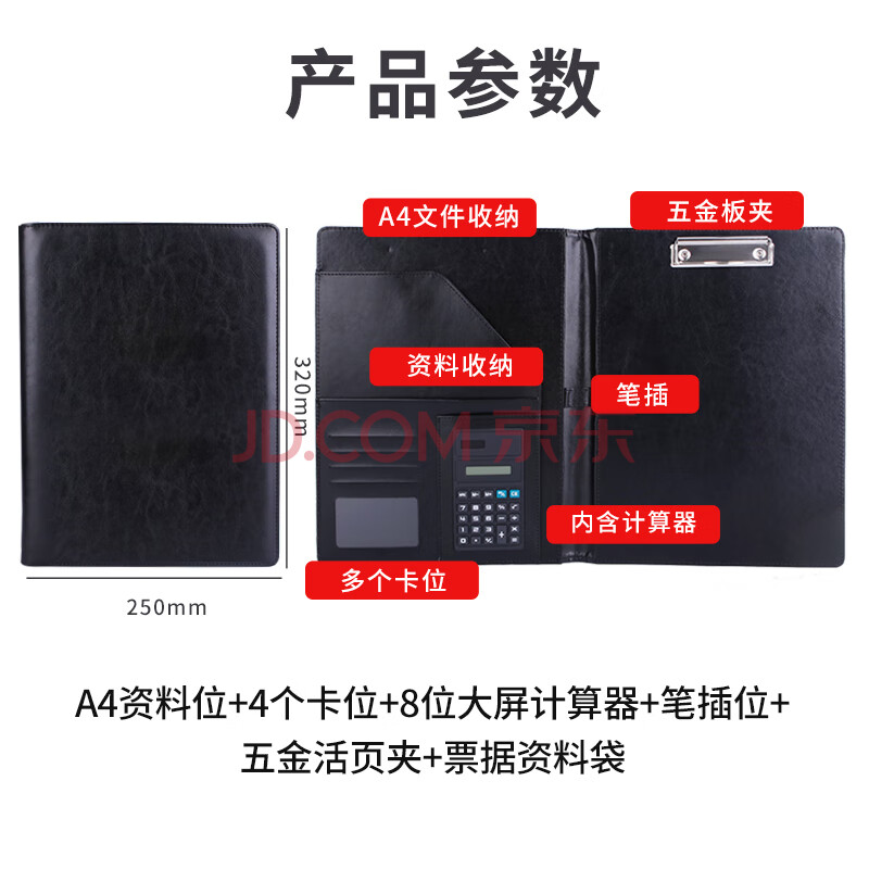 商品相册:优必利 A4皮质文件夹 多功能房产销售夹 经理夹保险汽车行业谈客夹 培训销讲夹资料夹定制logo 黑色 第