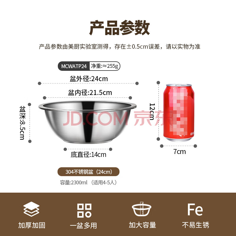 商品相册:美厨(maxcook)加厚304不锈钢汤盆24CM 洗菜盆调料盆和面盆MCWATP24 加宽加深第