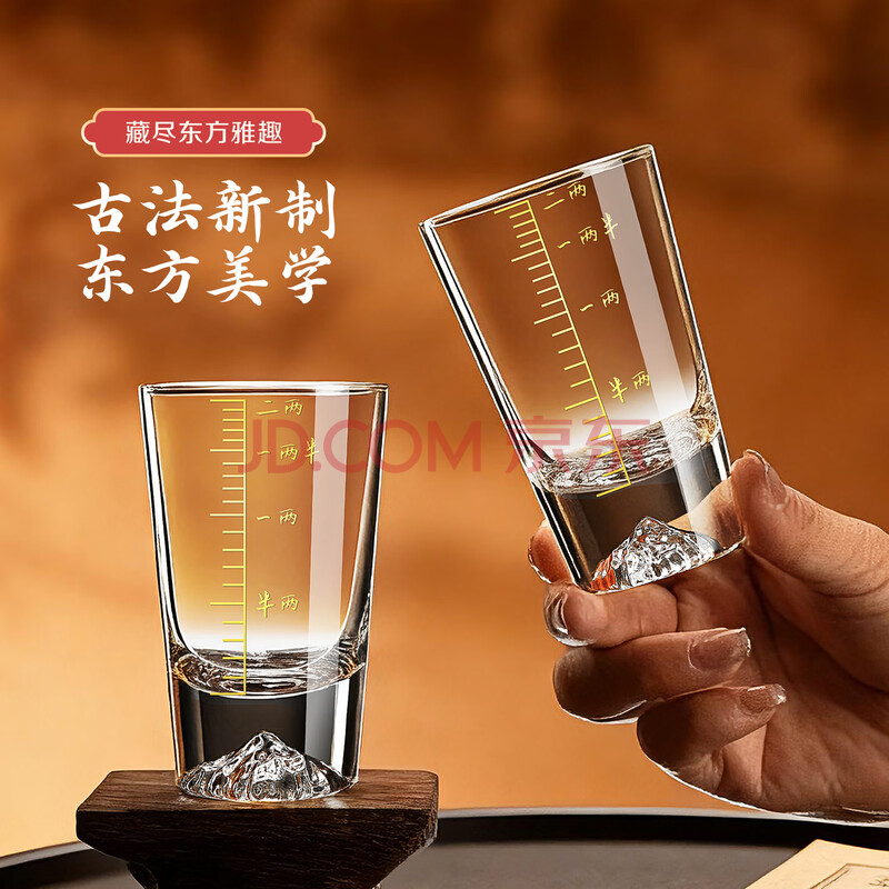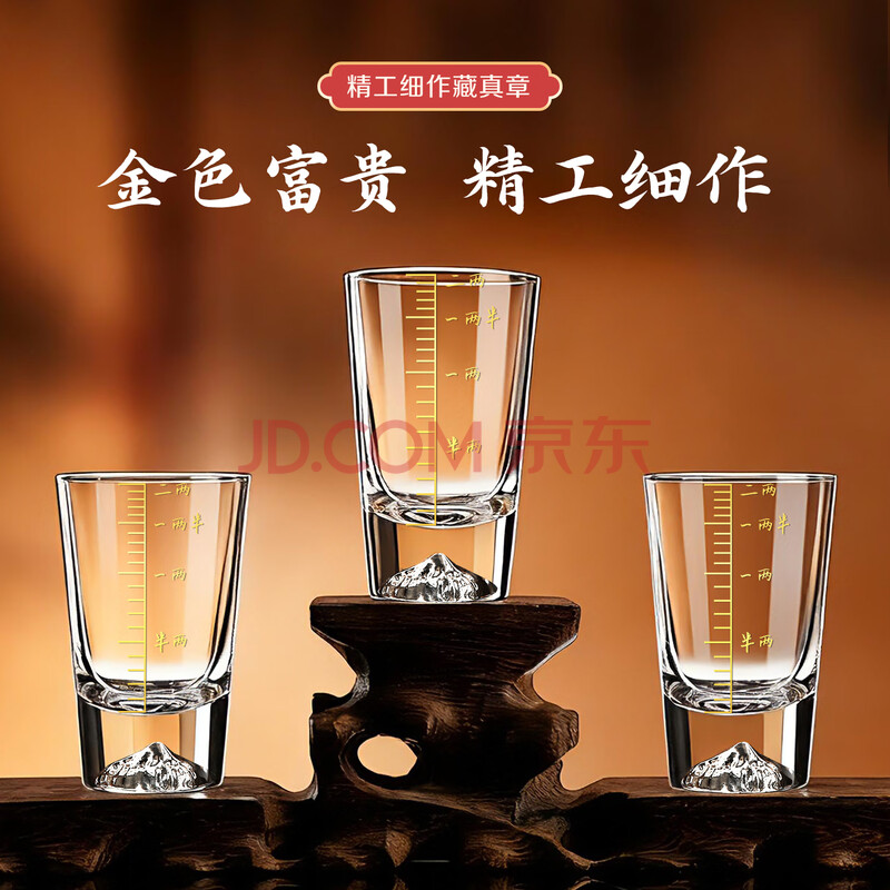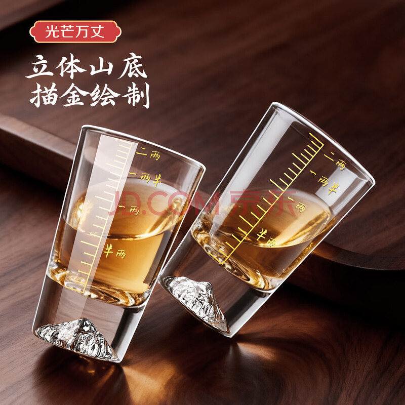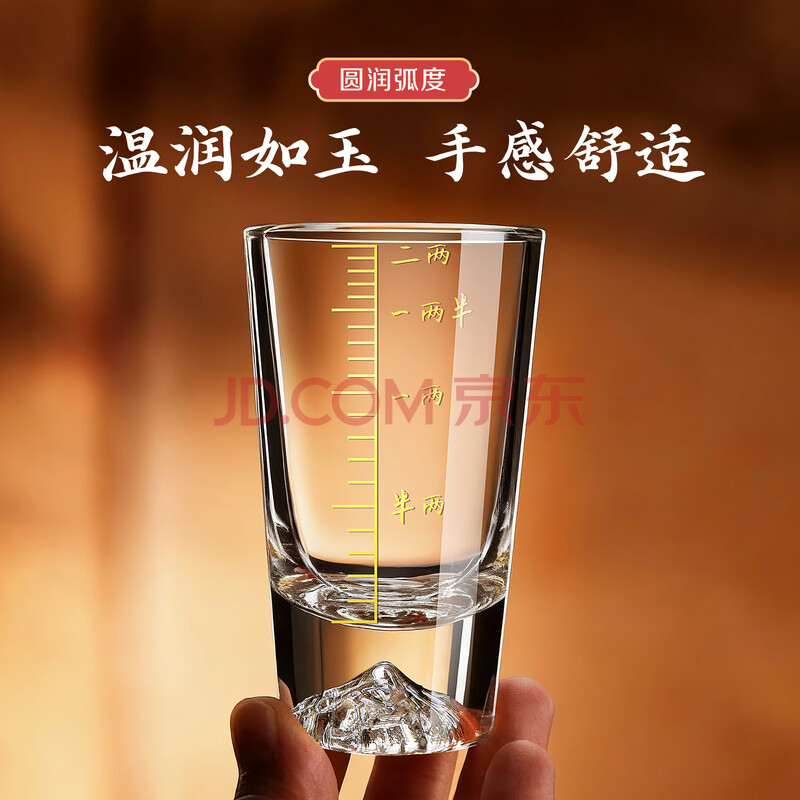 商品相册:青苹果加厚水晶玻璃白酒杯二两杯6只装 手握江山 带描金2两刻度观山杯第
