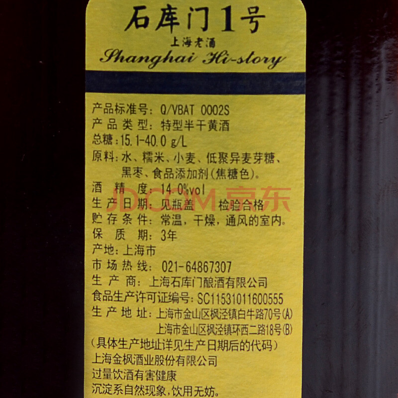 商品相册:石库门蓝牌1号 半干型 海派黄酒 500ml 单瓶装 上海老酒 送礼第