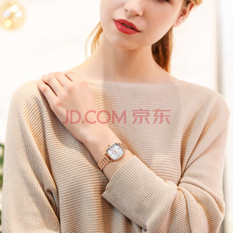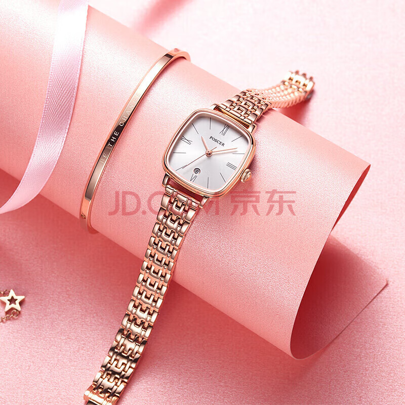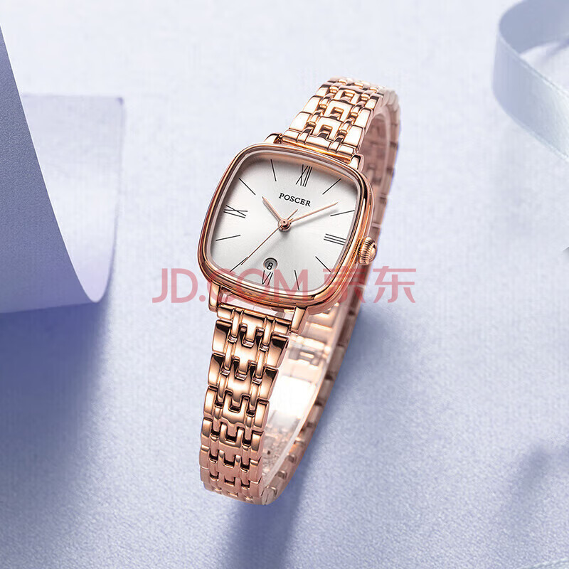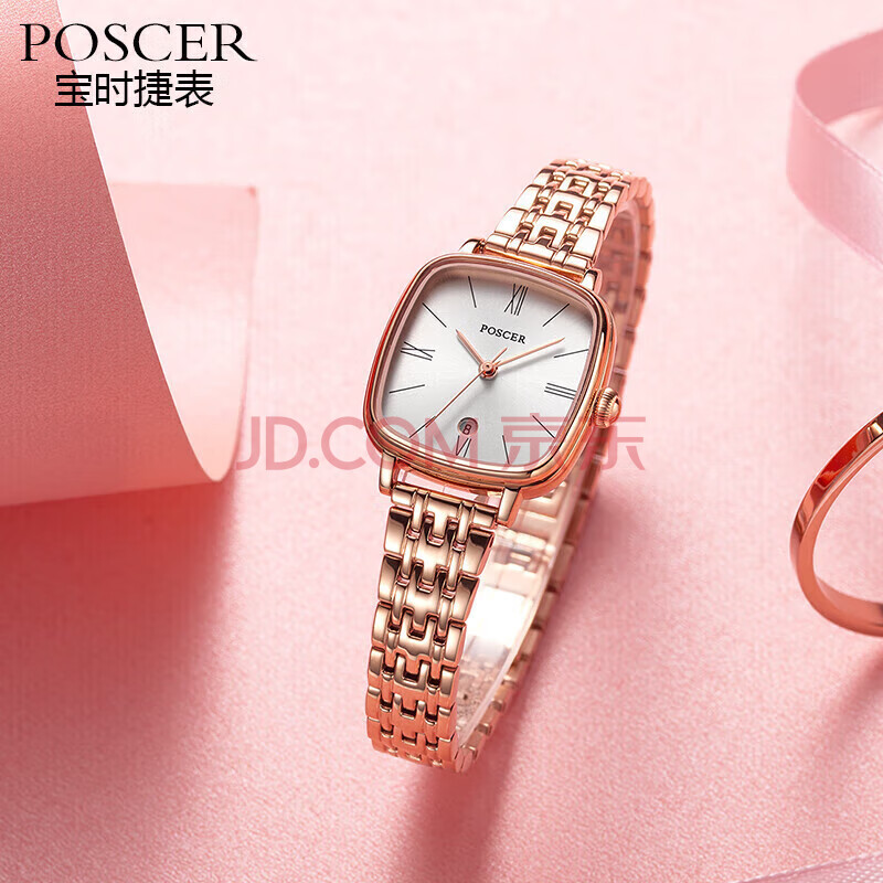 商品相册:宝时捷(POSCER)手表女士新年礼物精致小巧钢带小方表女石英手表送女友50066第