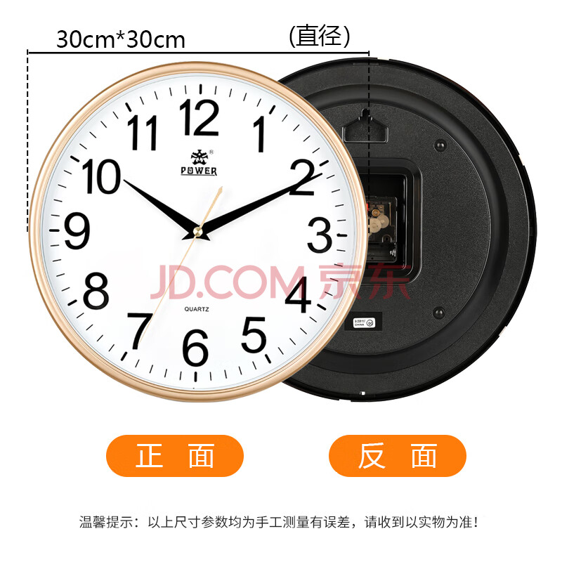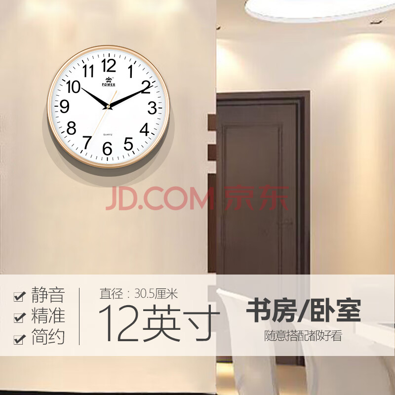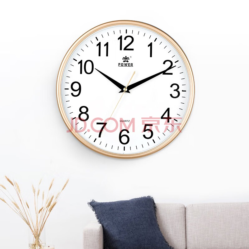 商品相册:POWER霸王挂钟 客厅简约时钟挂墙石英钟家用免打孔直径30cm不挑电池第