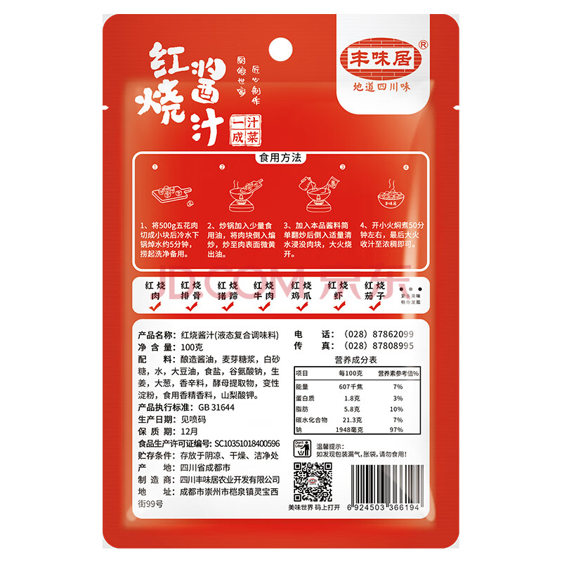 商品相册:丰味居红烧酱汁100g*4袋红烧料红烧肉酱汁自制家用调料包红烧排骨调味第