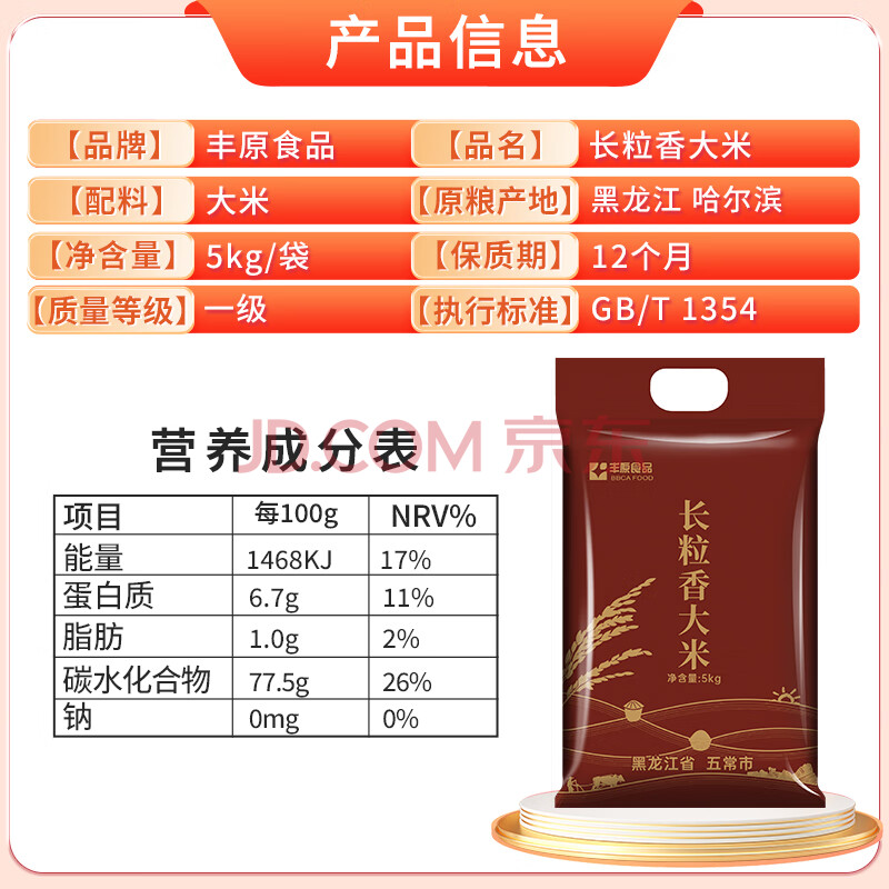 商品相册:丰原食品 长粒香米 10斤 东北大米 香米 粳米真空包装第