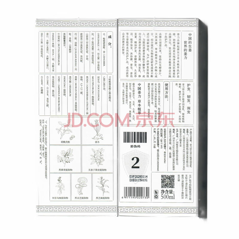 商品相册:姜力护发素2号 原生姜汁植萃润发乳生姜护理护发素500ml强韧健发第