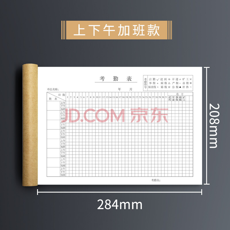 商品相册:嘉然恒5本装A4考勤表记工本31天出勤登记本50张双面书写内芯 排班表上班登记簿记录本签到表上下午加班款第