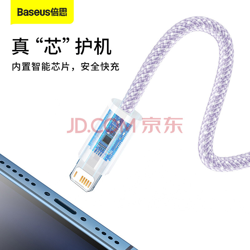 商品相册:倍思苹果数据线快充线PD20W充电线to lightning编织款iPhone14/13/12Promax/11/xs车载手机 2米紫第