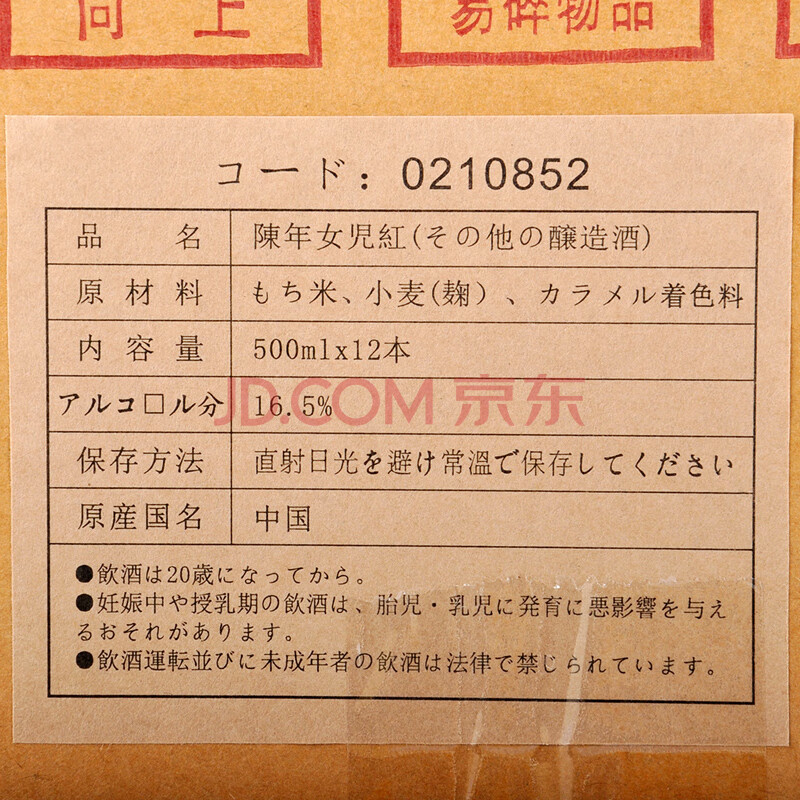 商品相册:女兒红 出口陈年花雕 半干 绍兴 黄酒 500ml*12瓶 整箱装 出口日本第