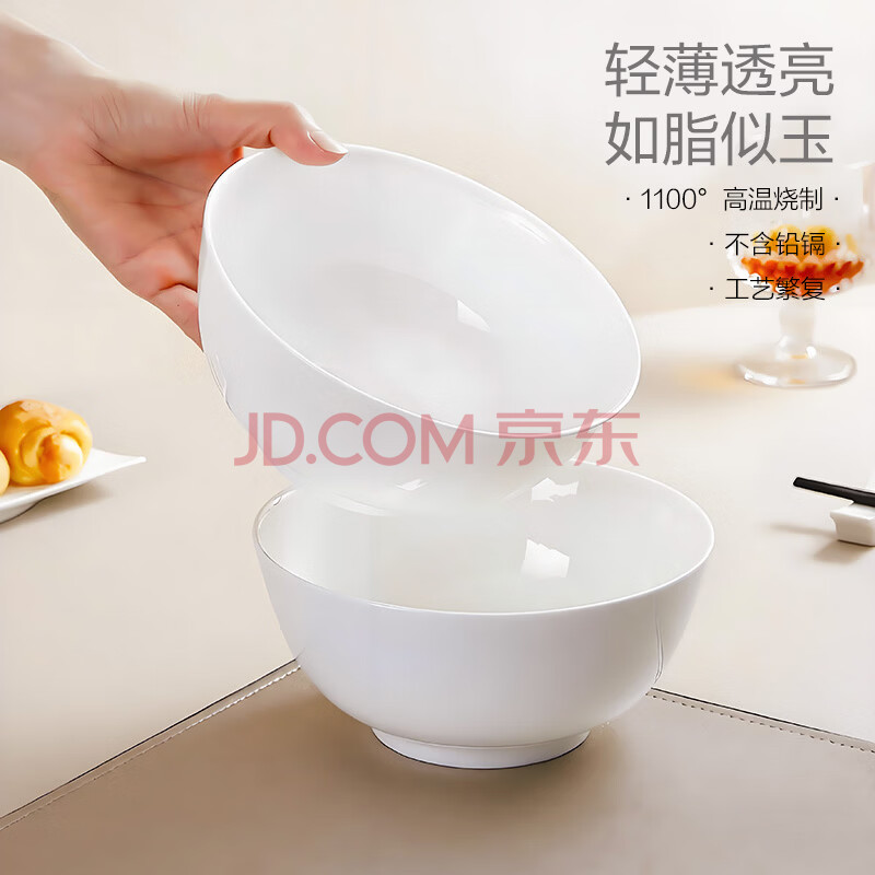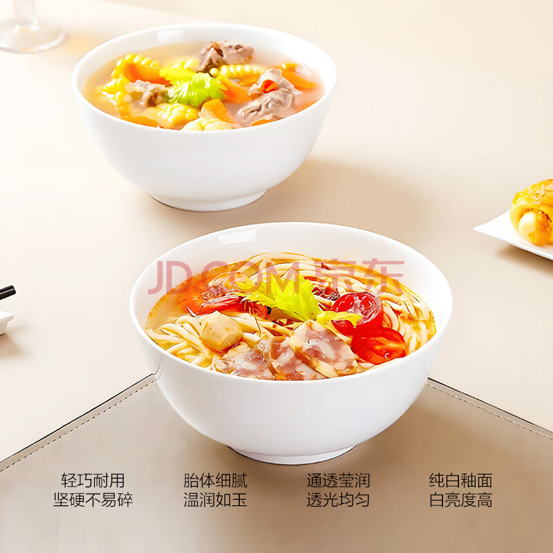 商品相册:斯凯绨(Sky Top)陶瓷汤碗泡面碗纯白沙拉碗骨瓷家用酒店餐具套装7英寸奥碗2件第