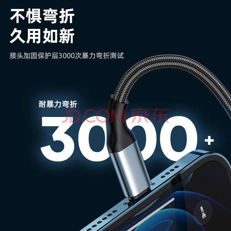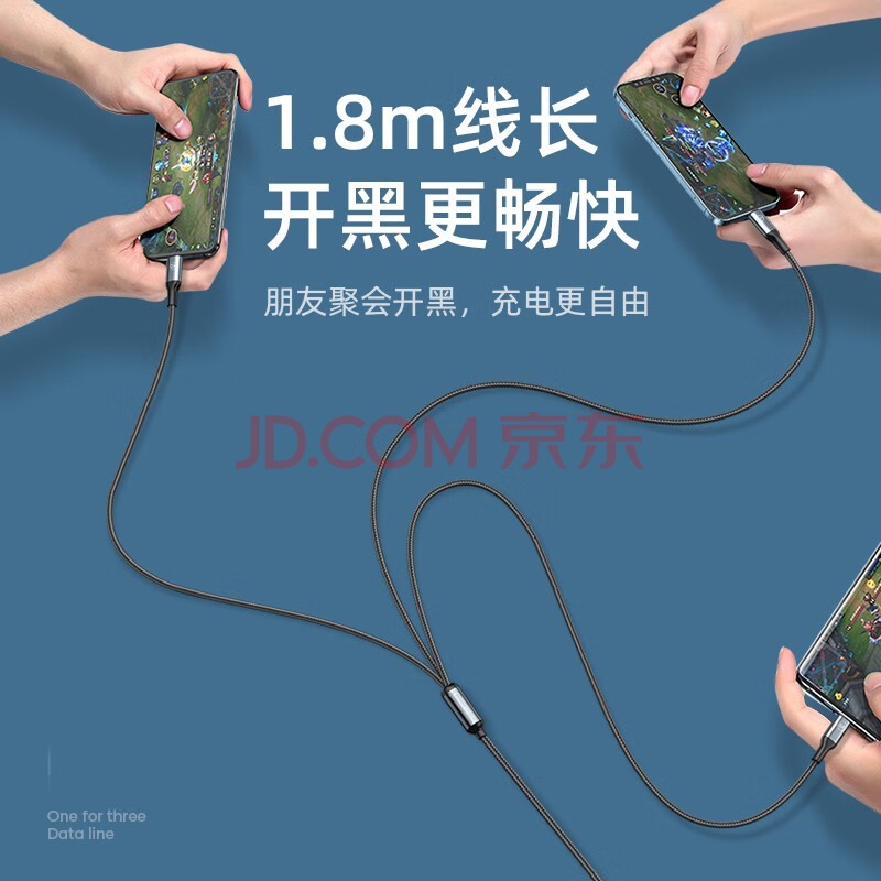 商品相册:领臣 数据线三合一快充100W适用苹果13Type-C安卓手机笔记本充电快充线 二拖三1.8米 LC-469 第