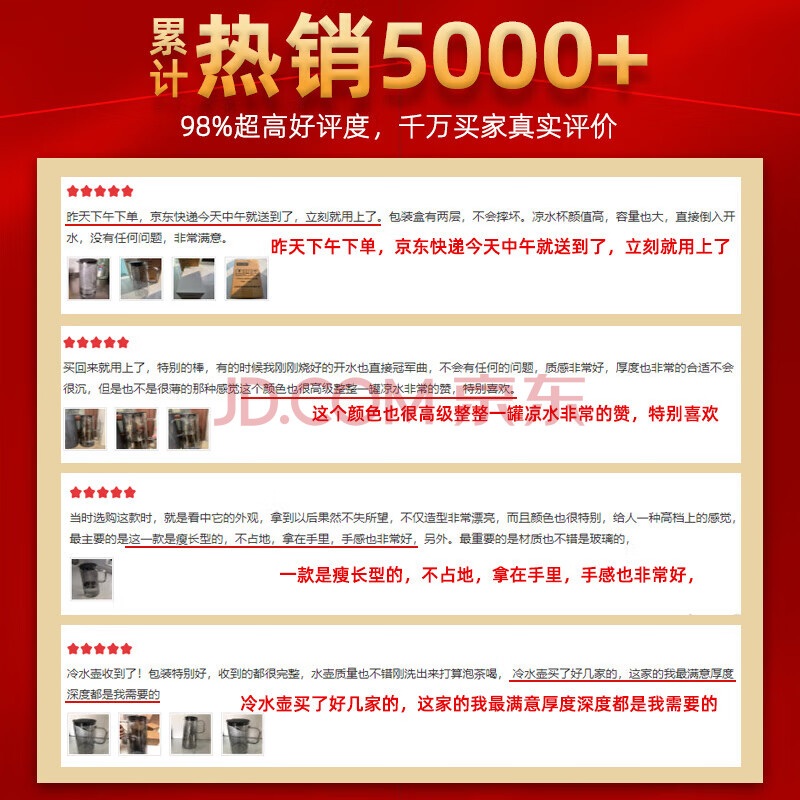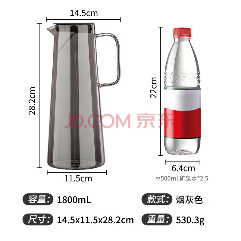 商品相册:JEKO&JEKO凉水壶耐高温冷水壶玻璃杯家用晾水壶大容量花茶壶 1800mL烟灰色第