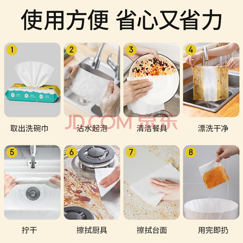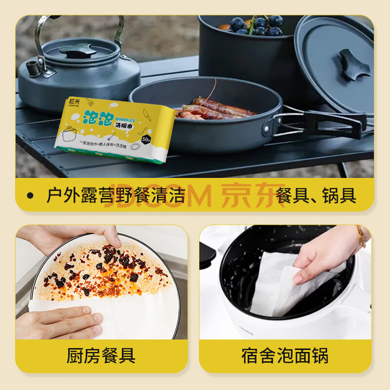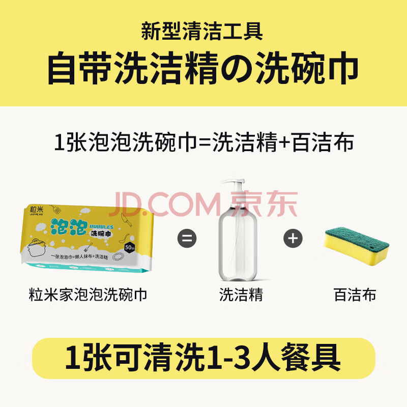 商品相册:粒米厨房洗碗巾一次性50片*3包可当厨房湿纸巾去油污洗碗布懒人抹布第