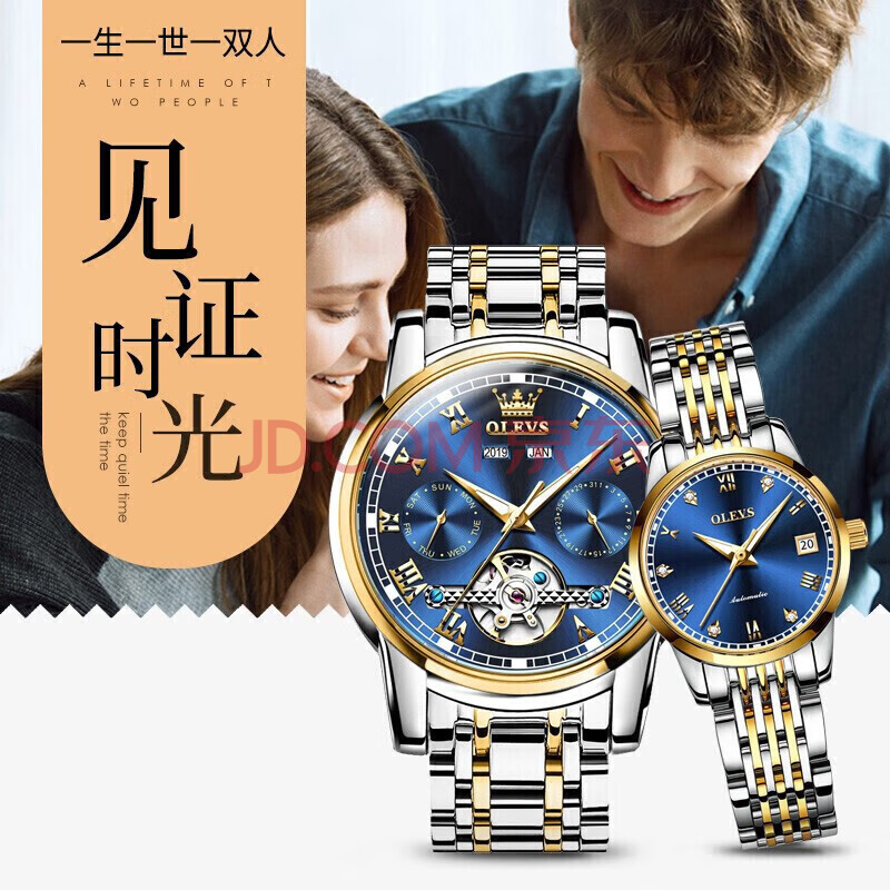 商品相册:欧利时(OLEVS)情侣对表一对手表男款全自动机械表女表生日礼物防水夜光时尚潮流第