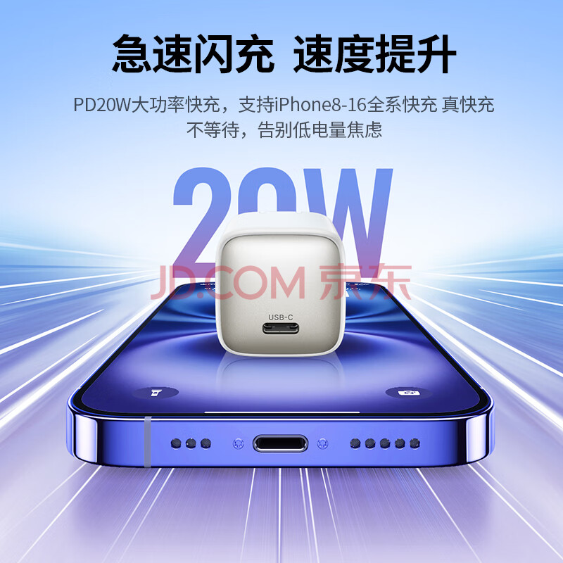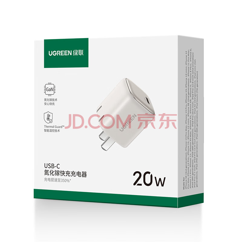 商品相册:绿联20W氮化镓充电PD快充头适用苹果17iPhone17/16/15ProMax/Plus/iPad华为小米手机平板Type-C插头第